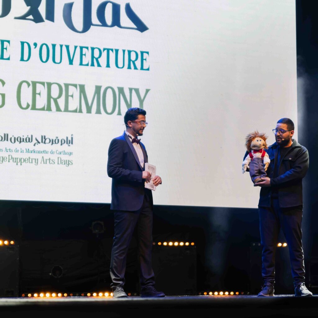 حفل الافتتاح الذي بثته القناة الوطنية التونسية، تضمن عروضا قياسية متنوعة ومشاهد راقصة في إطار الاحتفاء بخمسينية تأسيس المركز الوطني لفن العرائس، وافتتحت هذه المشاهد بمونولوغ قدمه الممثل طاهر عيسى بالعربي، مأخوذ من مسرحية “من العشق ما قتل” من انتاج المركز الوطني لفن العرائس، أخرجها سابقا المسرحي حسن المؤذن.