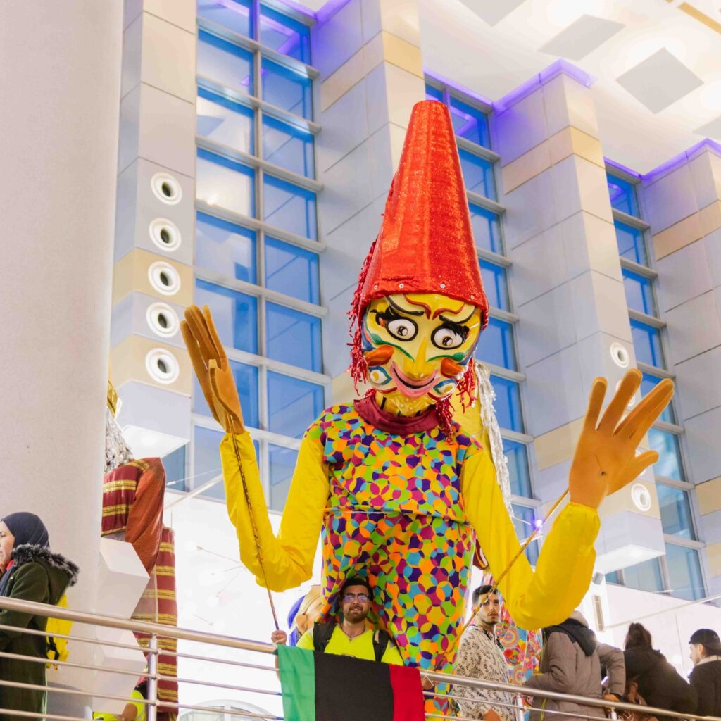 في إطار الدورة السابعة لأيام قرطاج لفن العرائس تضمن حفل الافتتاح فسيفساء من الفقرات الموسيقية والاستعراضية التي انطلقت منذ الساعة الثالثة والنصف بعد الزوال، والتي لاقت تفاعلا جماهيريا ملحوظا، فغصّت شوارع العاصمة ومختلف فضاءات مدينة الثقافة الشاذلي القليبي بعدد هام من المتابعين من أطفال ويافعين وكهول، وكانت المصافحة الأولى مع نضال اليحياوي الذي قدّم عرضا موسيقيا بالبهو السفلي للمدينة، فيما انطلق كرنفال العرائس من دار الثقافة ابن رشيق ليجوب عددا من شوارع العاصمة في اتجاه مدينة الثقافة، كما تابع الحضور عرضا فنيا ثانيا مع فرقة “جونى مونترويل”، كما كان لعشّاق العرائس العملاقة بساحة المسارح موعد مع المسرحية الفرنسية “السيدة البيضاء”، فضلا عن عدد من الفقرات التنشيطية الأخرى.